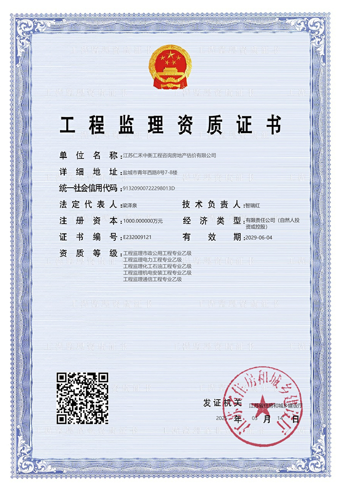 - 監(jiān)理資質(zhì)乙級(jí)證書(shū)